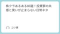 投資 潮目が変わってきたか?!上昇気配もまだまだ気が抜けない2022年10月の資産運用状況 最近、徐々に当ブログのアクセス数が上がりだして「以外と見てくれてる人おるやん!」とちょっぴり嬉しくなると同時に、「どうせなら株価も上がってくれやっ」と軽く毒を吐いているコツ男です。10月は騰がったり下がったりを繰り返しておりましたが、月の後... 2022.10.31 投資資産の運用状況