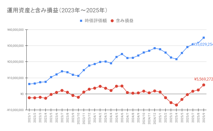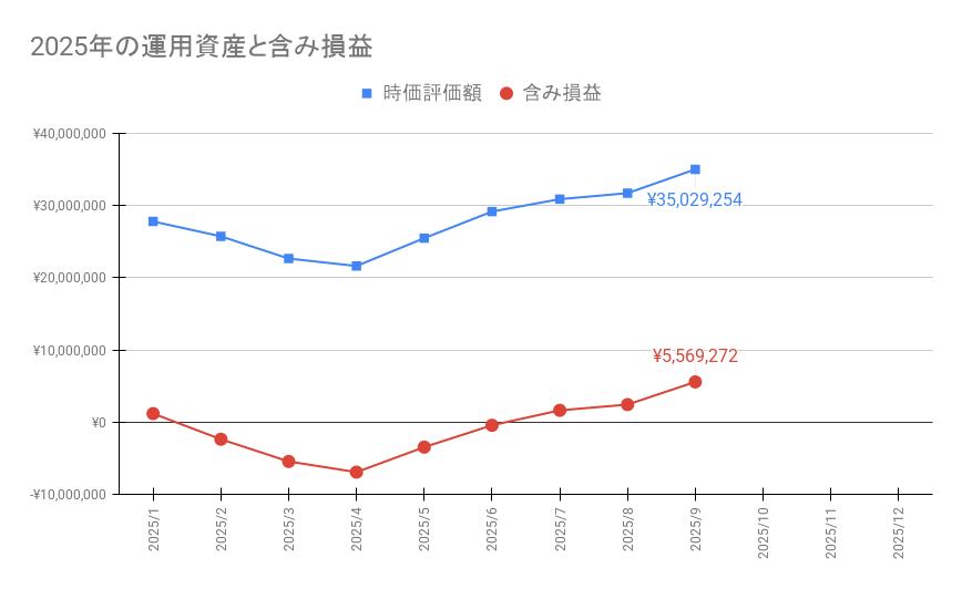 2025年9月終了時点の総資産は¥35,029,254となりました。今月も3,000万円台をキープ!・・・どころか、過去最高値を大きく更新!