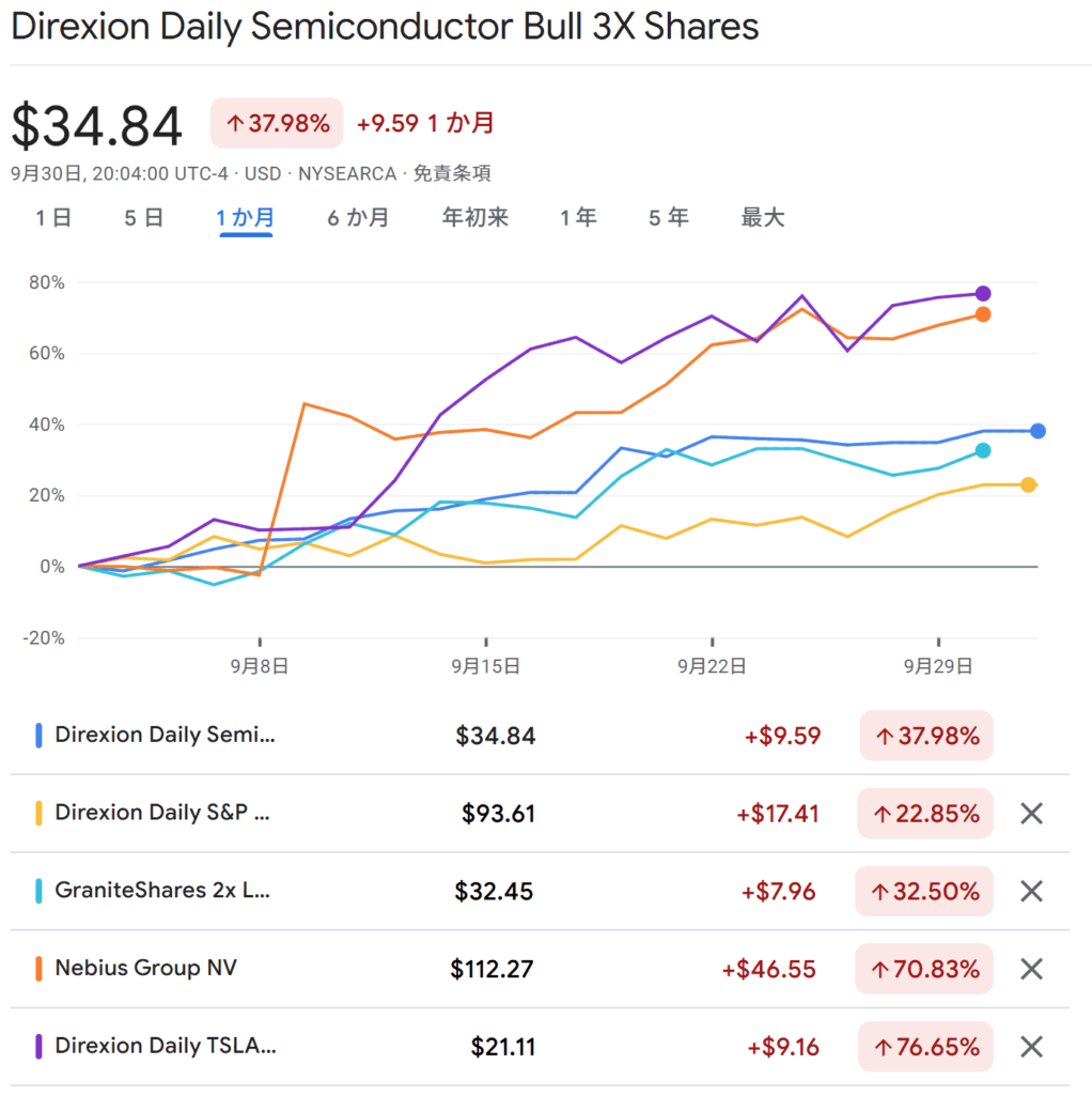 レバレッジ&個別系。SOXL&LABUが久々に強い1か月でした。