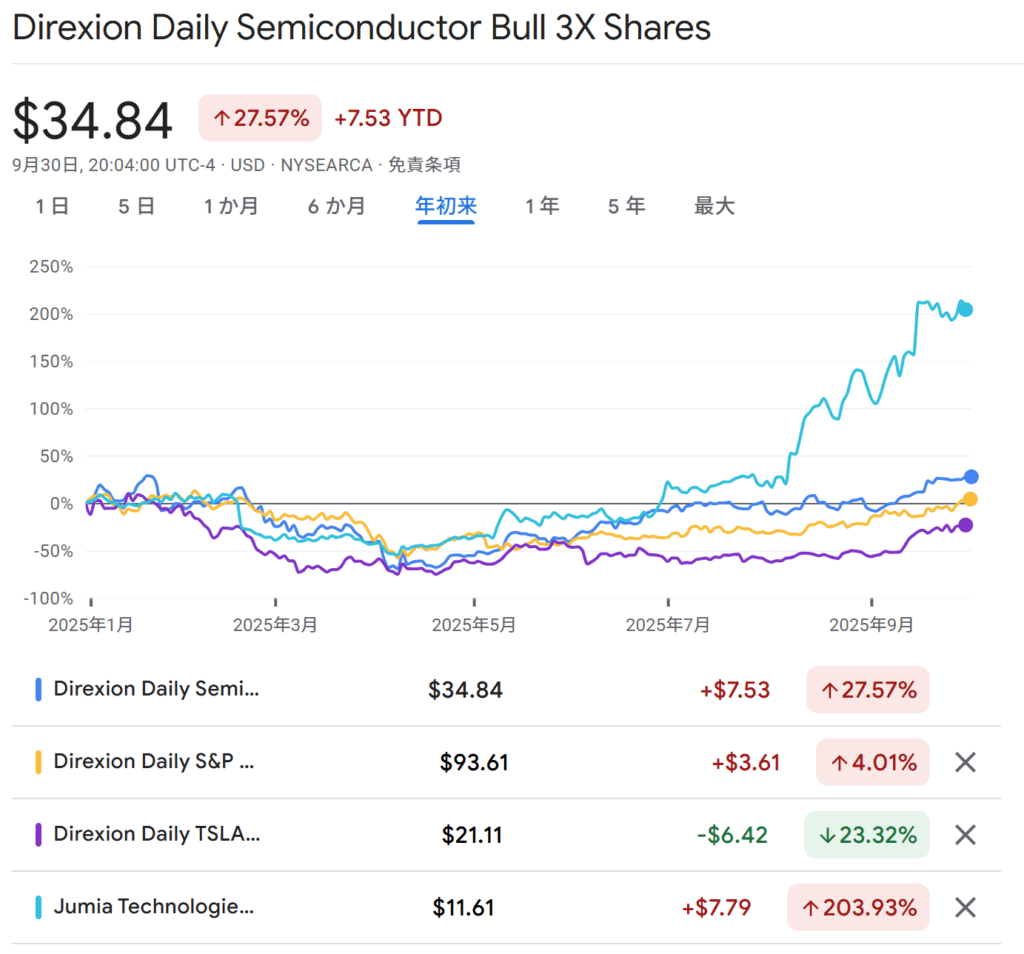 そして私のPFのメインを張るSOXL&LABUは9月の上昇を受けてようやく年初来でプラスになりました。