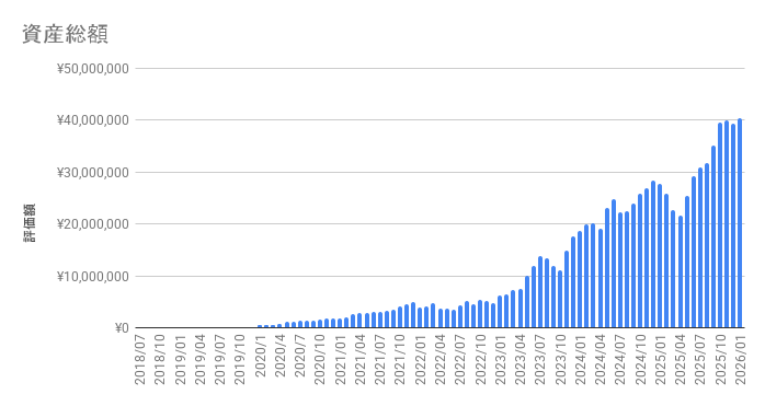 2026年1月終了時点の総資産は¥40,443,724となりました。2か月ぶりに4,000万円の大台に復帰!