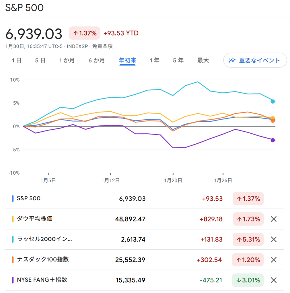 なんか結構ガタガタと動いてた気がしたのですが、終わってみればしっかりとプラスで1月も好調だった様です。FANG+を除いては・・・。