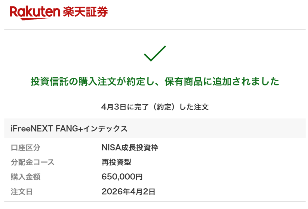 4月2日に注文出して3日に約定。手動による成長枠投資への投入も無事完了しました。